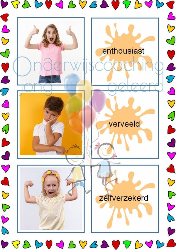 Met deze memory leren kinderen spelenderwijs om gezichtsuitdrukkingen en bijbehorende gevoelens/ emoties te herkennen.