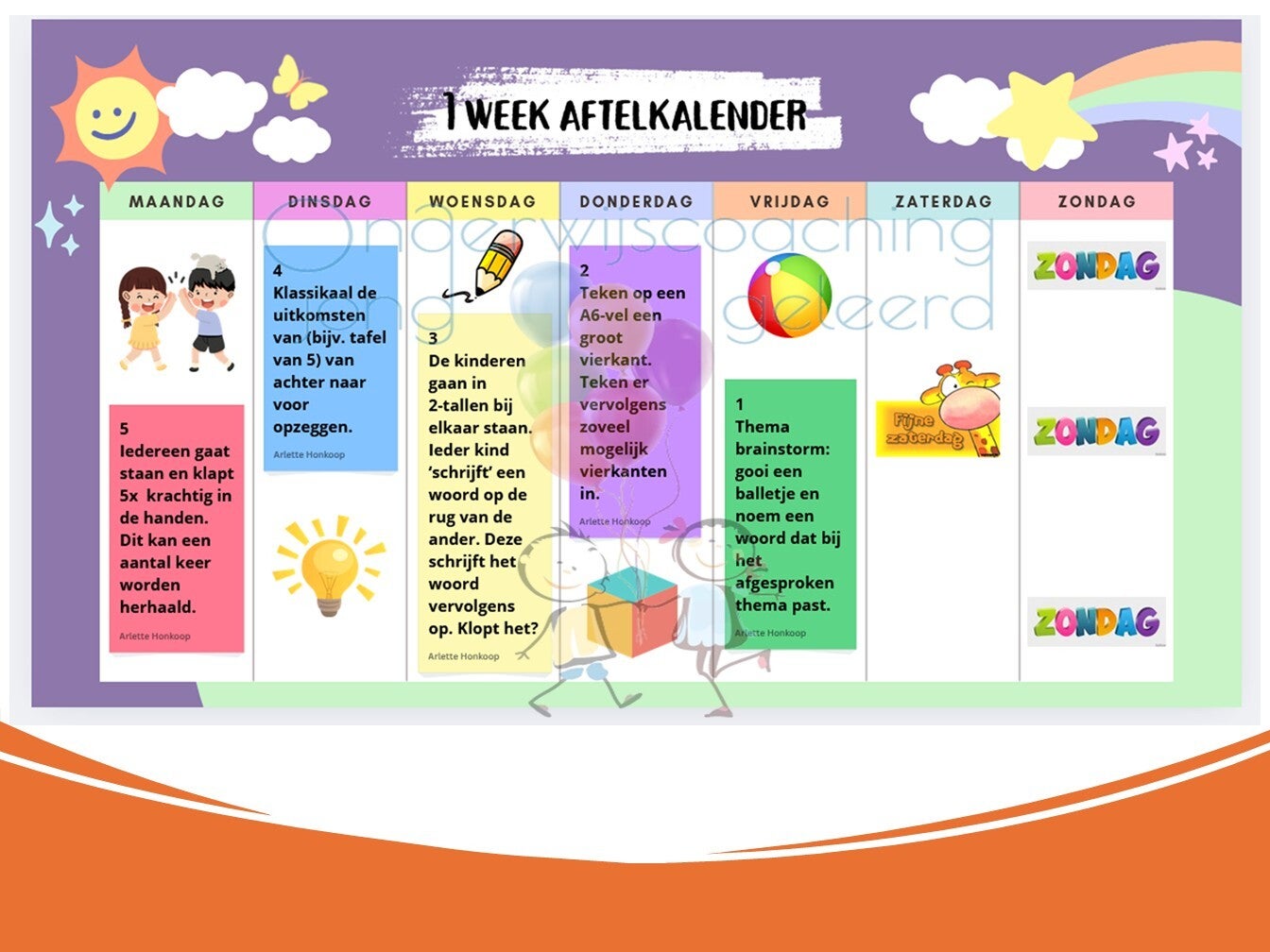 🎈Tip: druk ieder blad op wat dikker papier af en lamineer daarna. Zo kan deze aftelkalender vaker worden gebruikt.