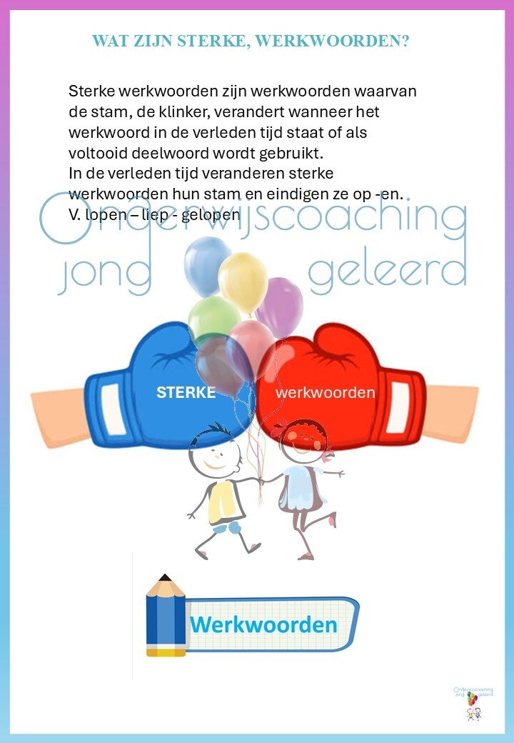 - uitleg wat sterke werkwoorden zijn, voorbeelden en hoe deze vervoegd worden