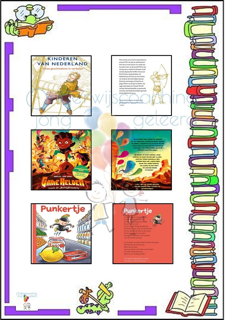 * Boekverslag - Kinderen gaan op zoek naar informatie over de auteur e/o illustrator. Hierbij wordt ook gekeken of de auteur nog meer boeken geschreven heeft en zo ja, welke dit dan zijn.