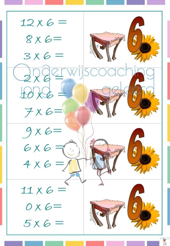 - tafelbluf-kaarten van de tafel van 1 t/m 12