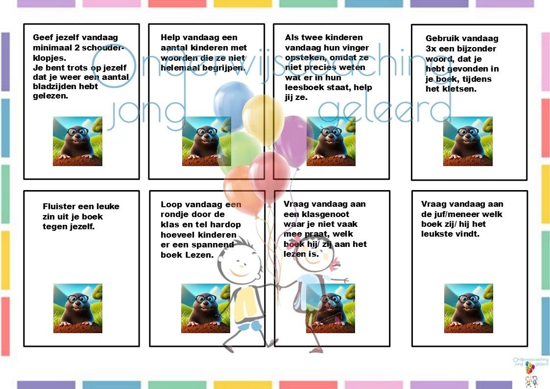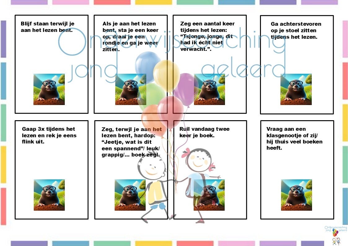 Wie is de Leesmol-kaartjes zijn een afgeleide van 'Wie is de Mol'-kaartjes, gericht op lezen in je groep.