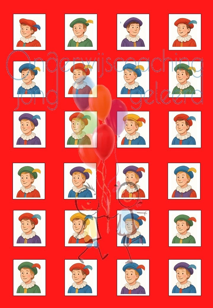 - 24 grotere kaarten om daaruit een keuze te maken wat jouw de te raden pietje is.