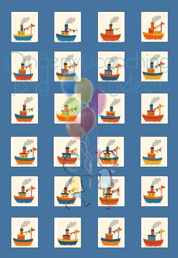 - 24 grotere kaarten om daaruit een keuze te maken wat jouw de te radenstoomboot is.
