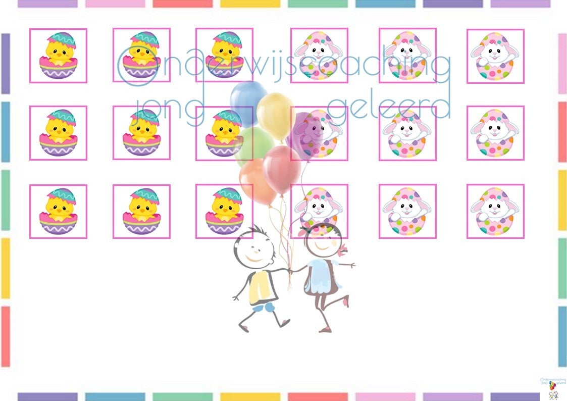 Je kunt ervoor kiezen om eerst een aantal keer 'drie op een rij' te spelen en dan te kleuren, of andersom.